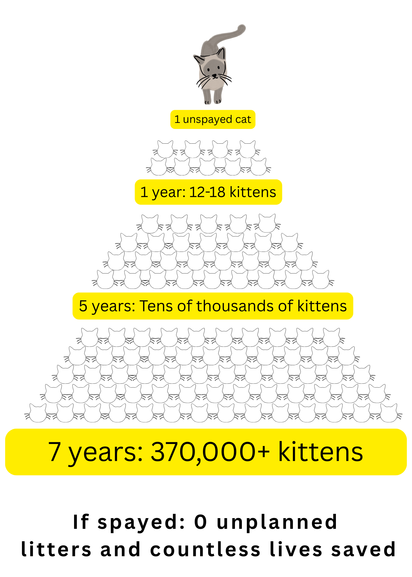 One spayed cat can prevent up to 370,000 offspring over a lifetime